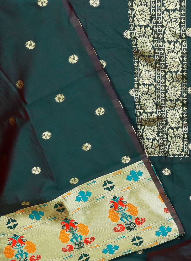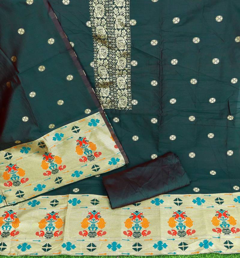 | Product Description | Pure Tapeta Silk Salwar Suit Dress Material With Paithani Pattern |