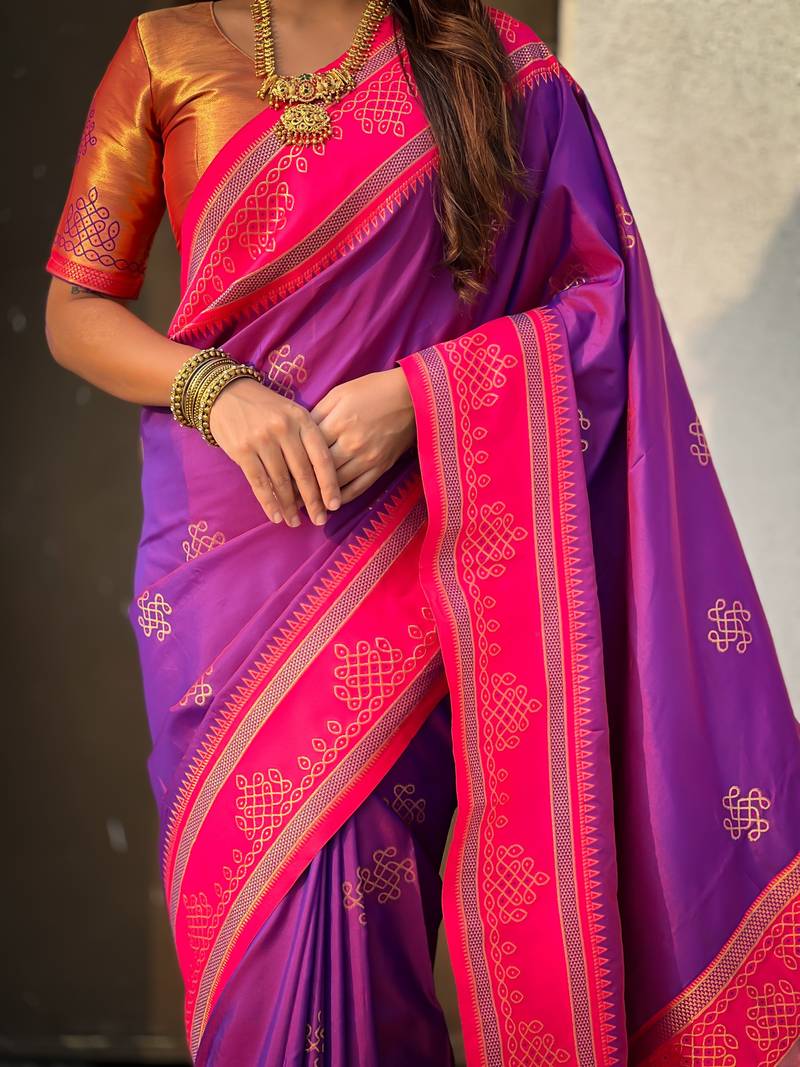 | Product Name | Purple Soft Silk Rangoli Art Zari Weaving Saree With Contrast Blouse Piece | |
