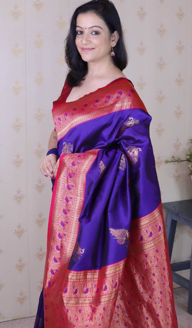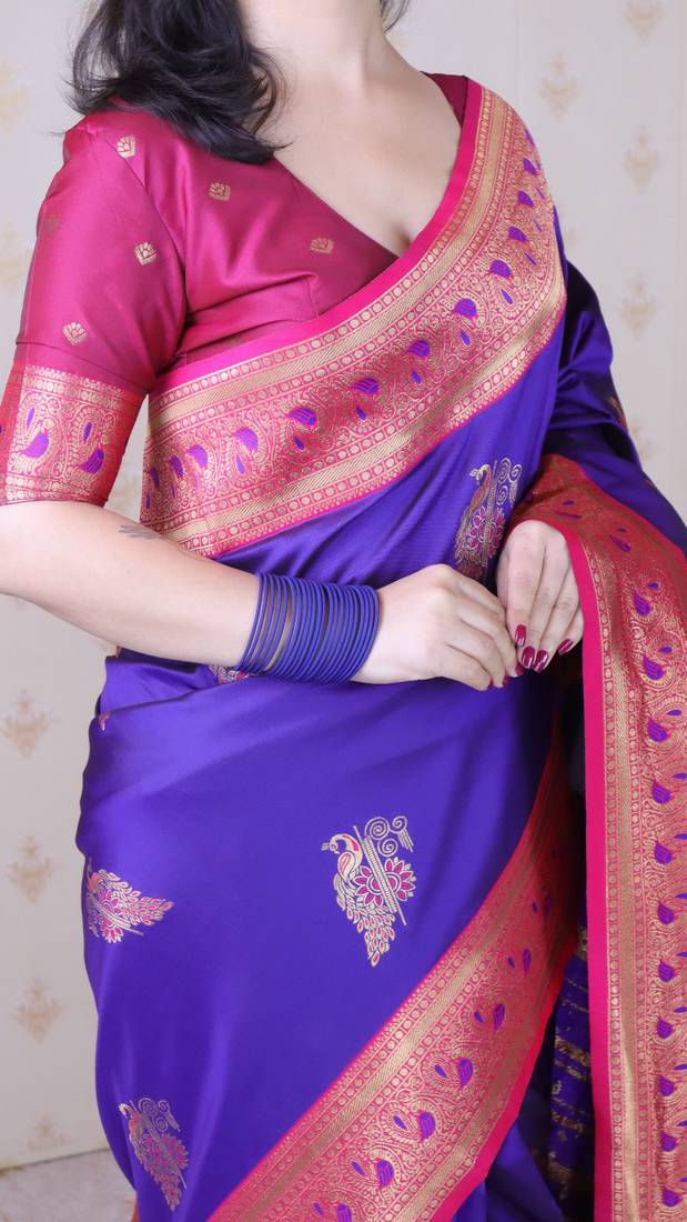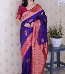 Purple soft silk zari weaving saree with contrast blouse piece