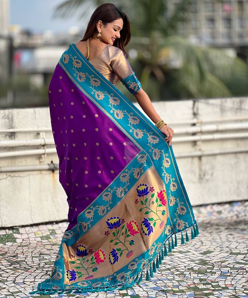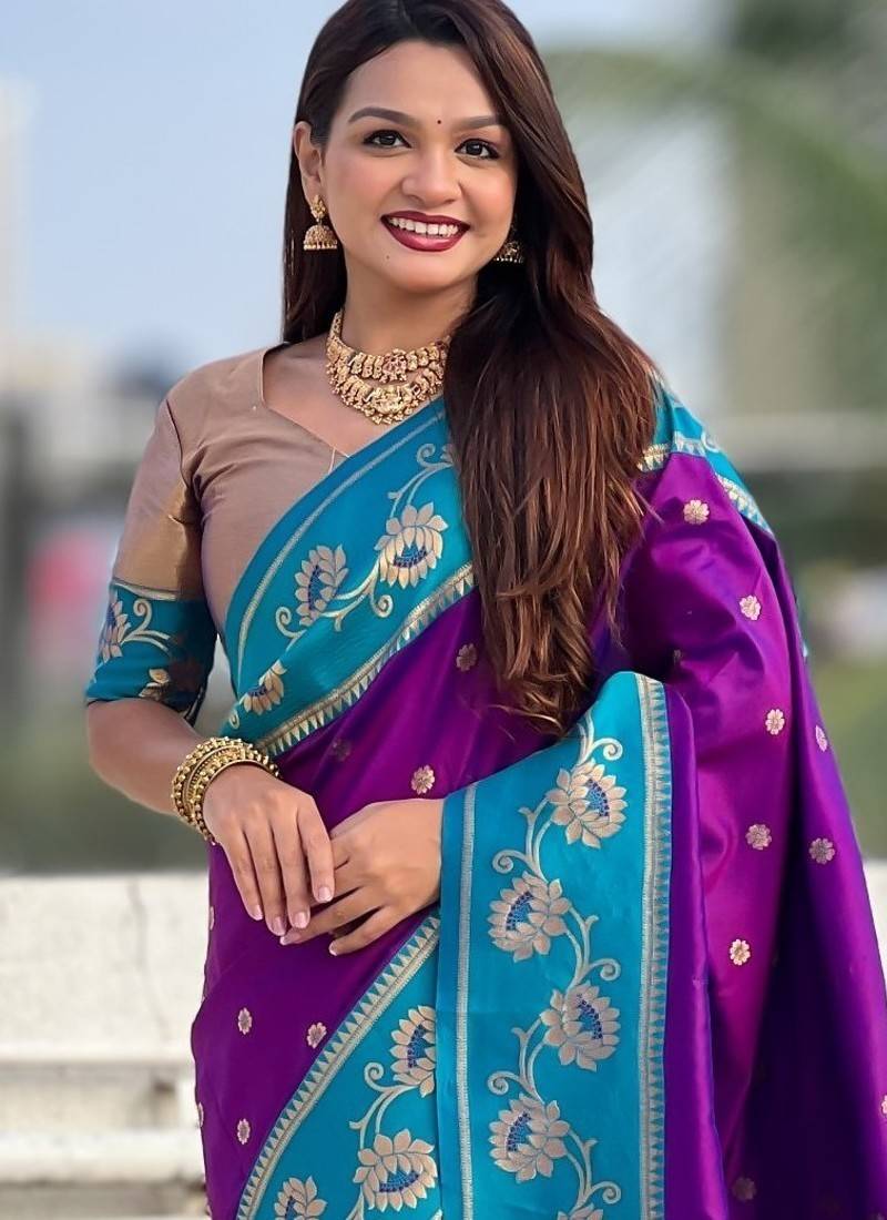 | Product Name | Purple Soft Silk Zari Weaving Saree With Contrast Blouse Piece | |