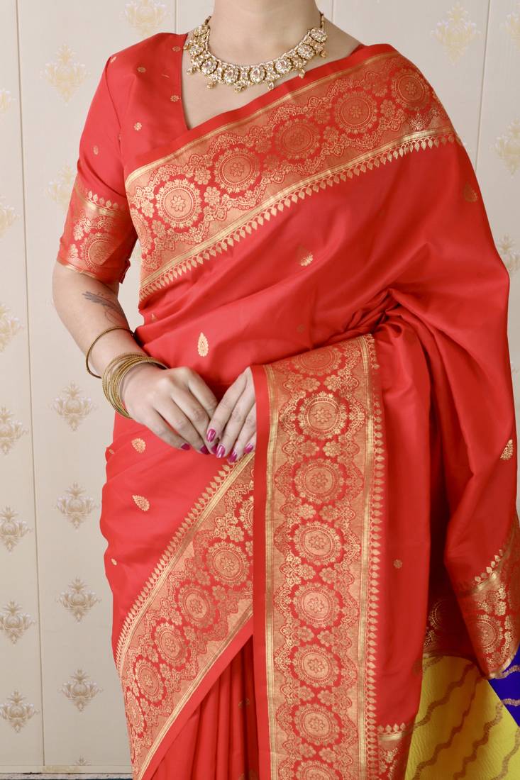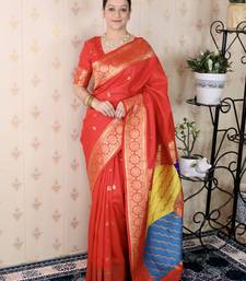 Red banarasi silk zari weaving saree with matching blouse piece