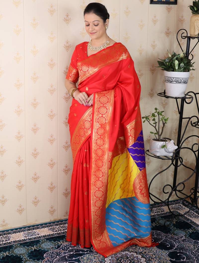 | Product Name | Red Banarasi Silk Zari Weaving Saree With Matching Blouse Piece | |