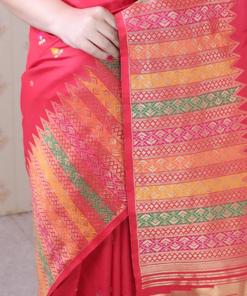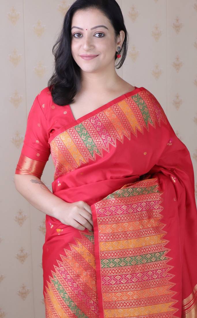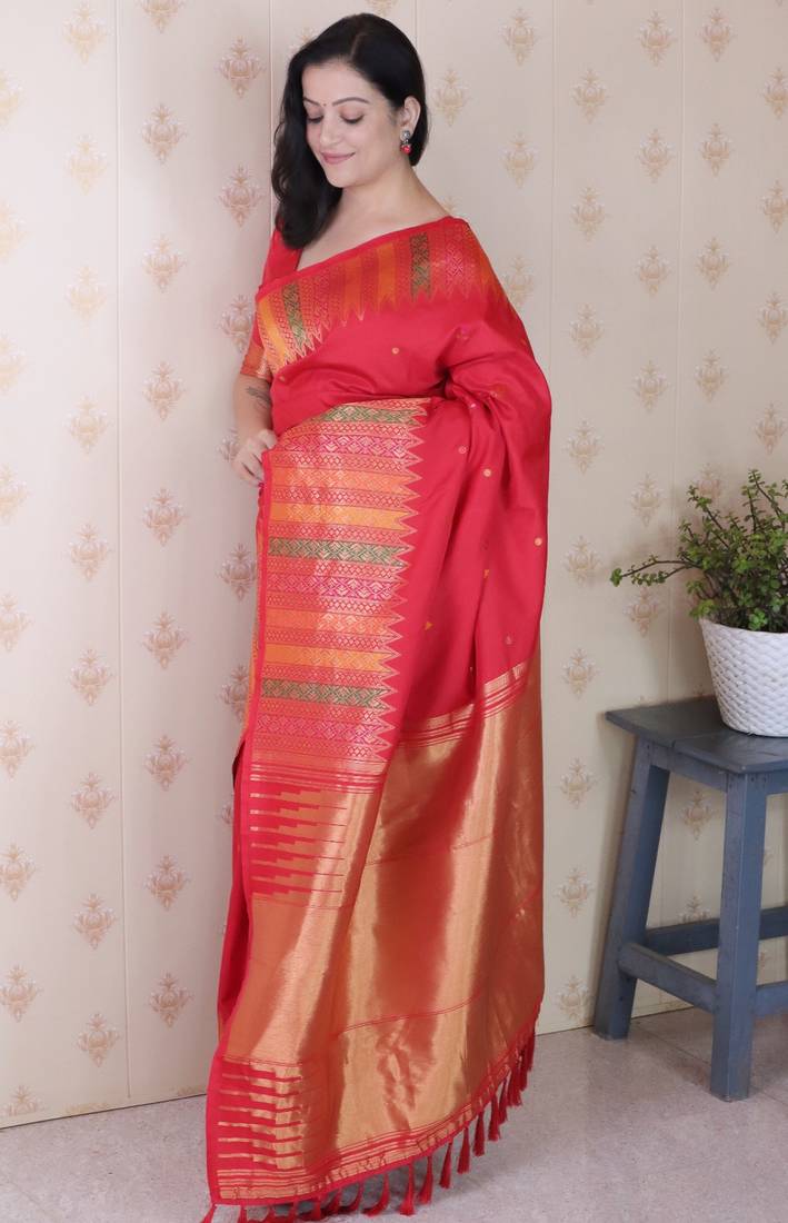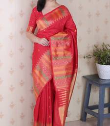 Red soft silk floral meenakari zari weaving saree with matching blouse piece
