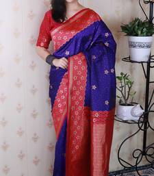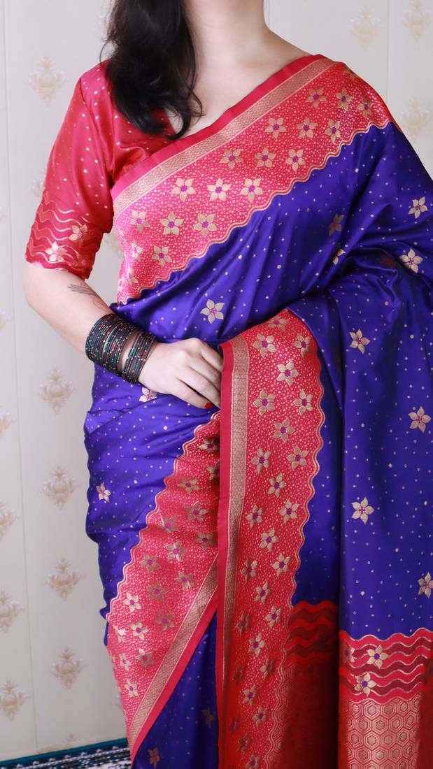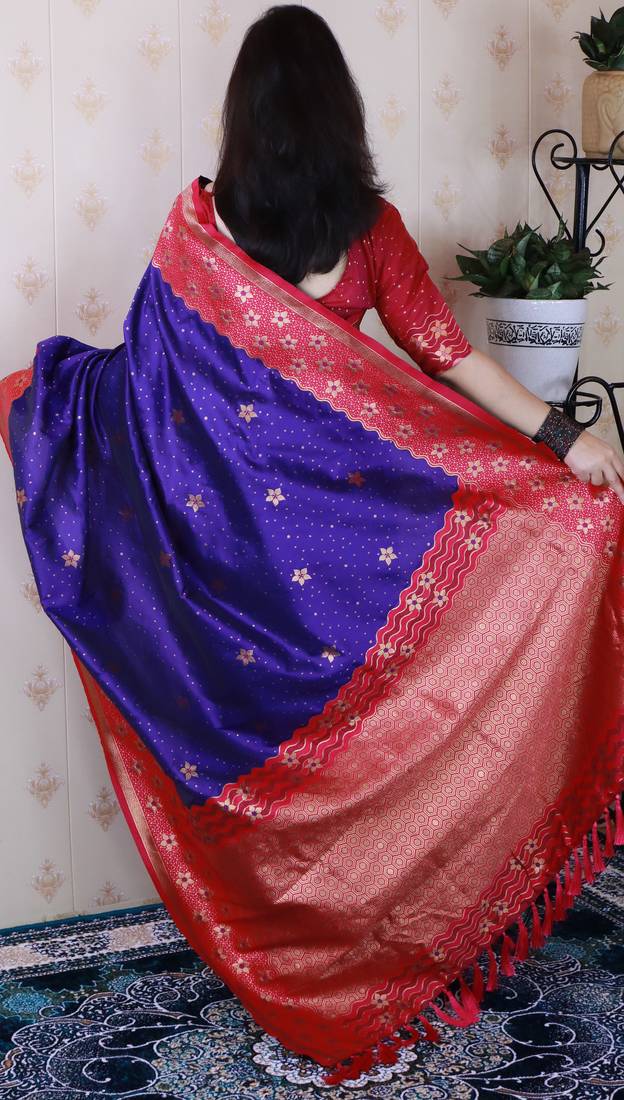 Violet banarasi silk zari weaving saree with contrast blouse piece