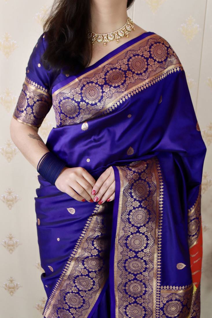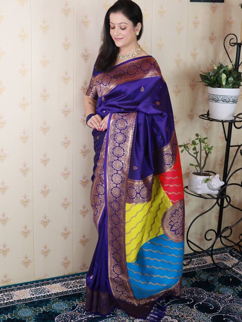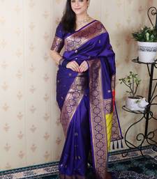 Violet banarasi silk zari weaving saree with matching blouse piece