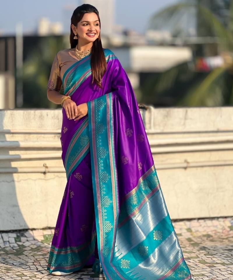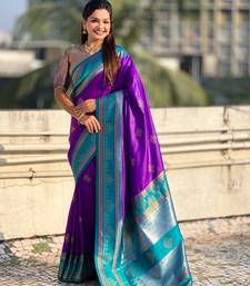 Violet soft silk rangoli art zari weaving saree with contrast blouse piece