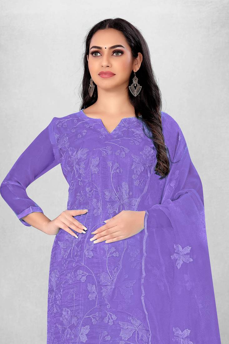 Women's organza silk embroidery unstitched dress material