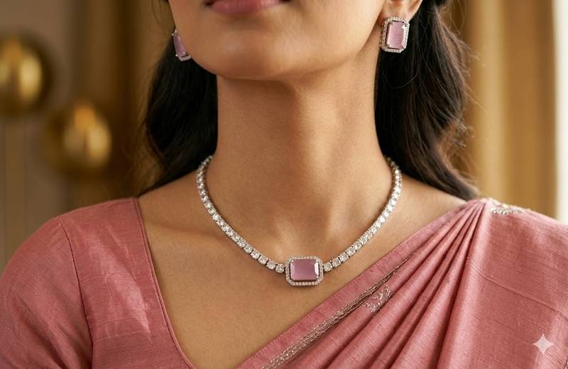 American diamond choker jewellery set - ideal for fashionable women's statement