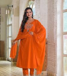 | Product Description | A Women's Orange Cotton Jaipuri Embroidery Kurta Set, Which Typically Includes A Kurta (Tunic), Matching Pants, And A Dupatta (Scarf). This Specific Ensemble Is Crafted From Pure Cotton And Features Designer Embroidery Work On The Neckline, Pockets, And Sleeve Cuffs, Often Accompanied By A Lightweight Malmal Dupatta. |