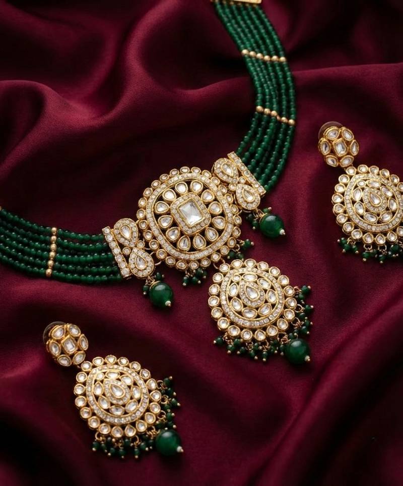 Elegant green kundan choker necklace set | gold-plated handcrafted indian ethnic jewelry for weddings & festivals