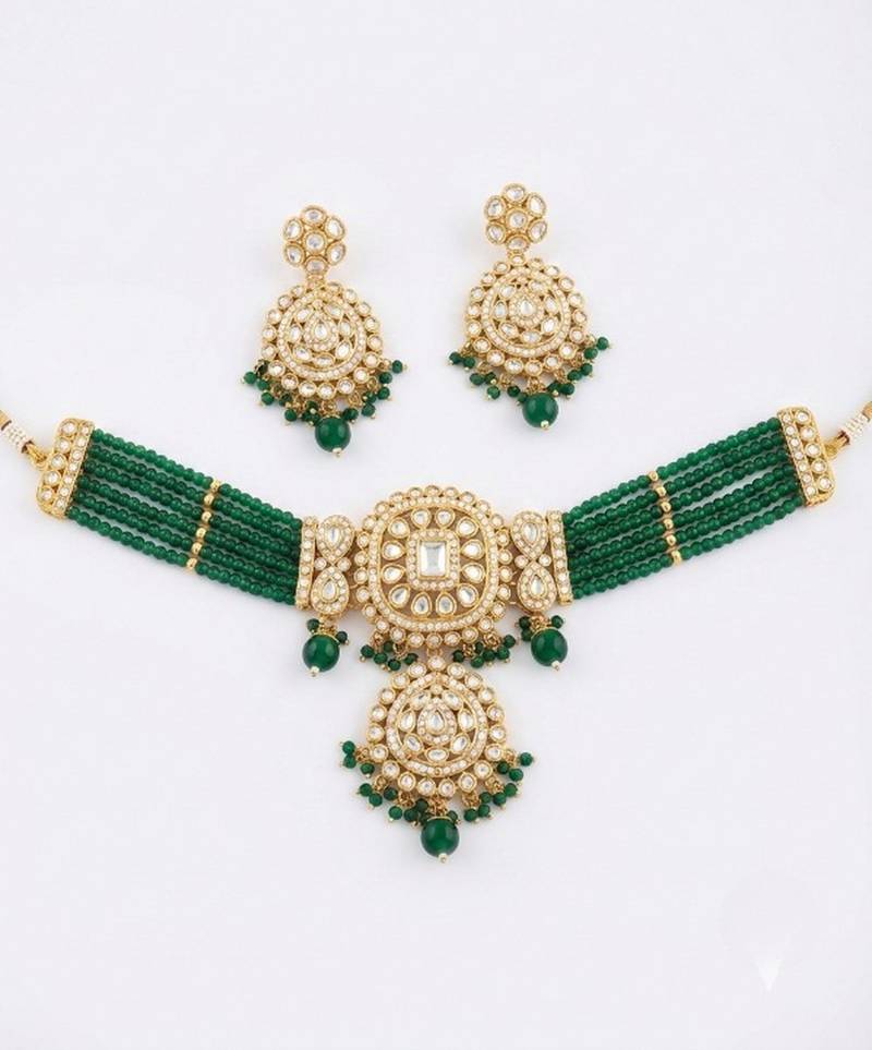 | Product Name | Elegant Green Kundan Choker Necklace Set | Gold Plated Handcrafted Indian Ethnic Jewelry For Weddings & Festivals | |