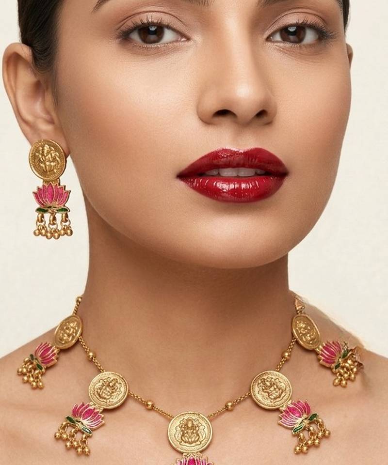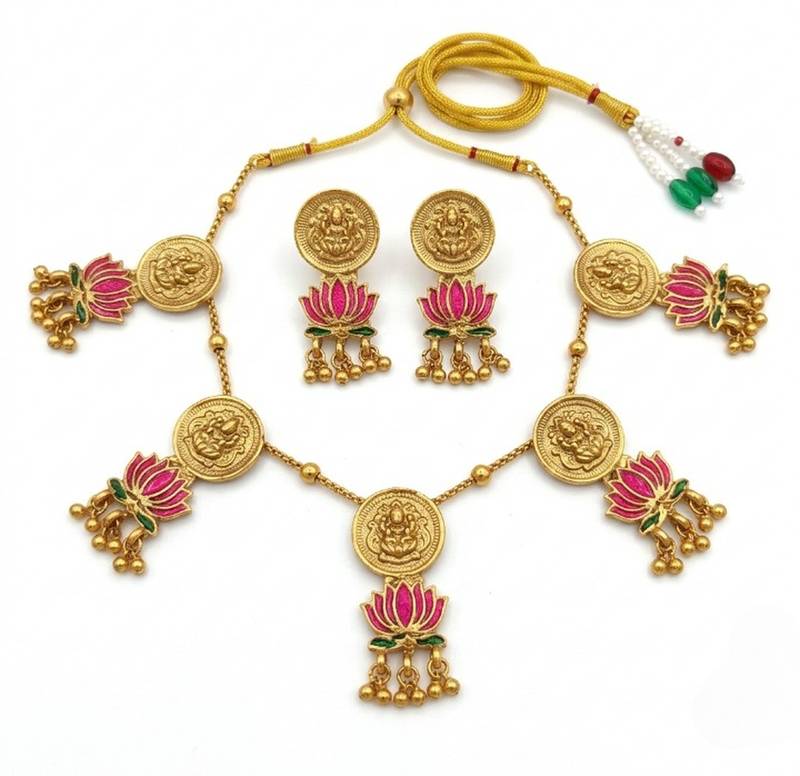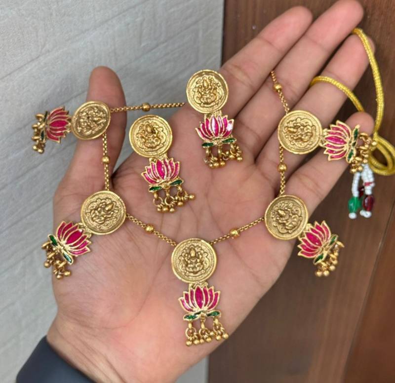 | Product Name | Exquisite Gold Plated Lakshmi Coin & Lotus Necklace Set Traditional Handcrafted Ethnic Jewelry For Women | |