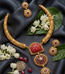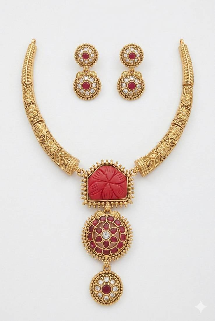 | Product Name | Handcrafted Gold Plated Ethnic Necklace Set With Red Carved Stones & Floral Pendant Bridal Wedding Jewelry | |