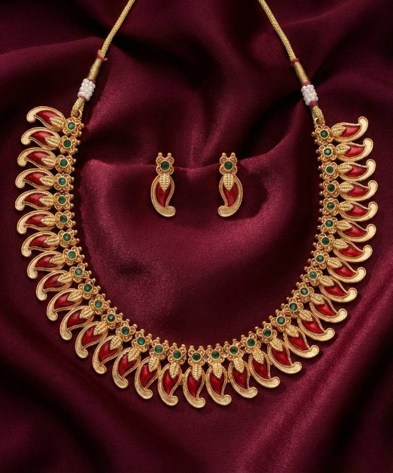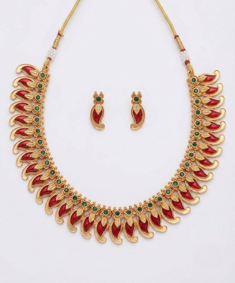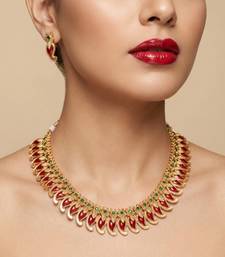 | Product Name | Handcrafted Traditional Gold Plated Red Mango Malai Necklace Set Ethnic Kemp Jewelry For Weddings & Festivals | |