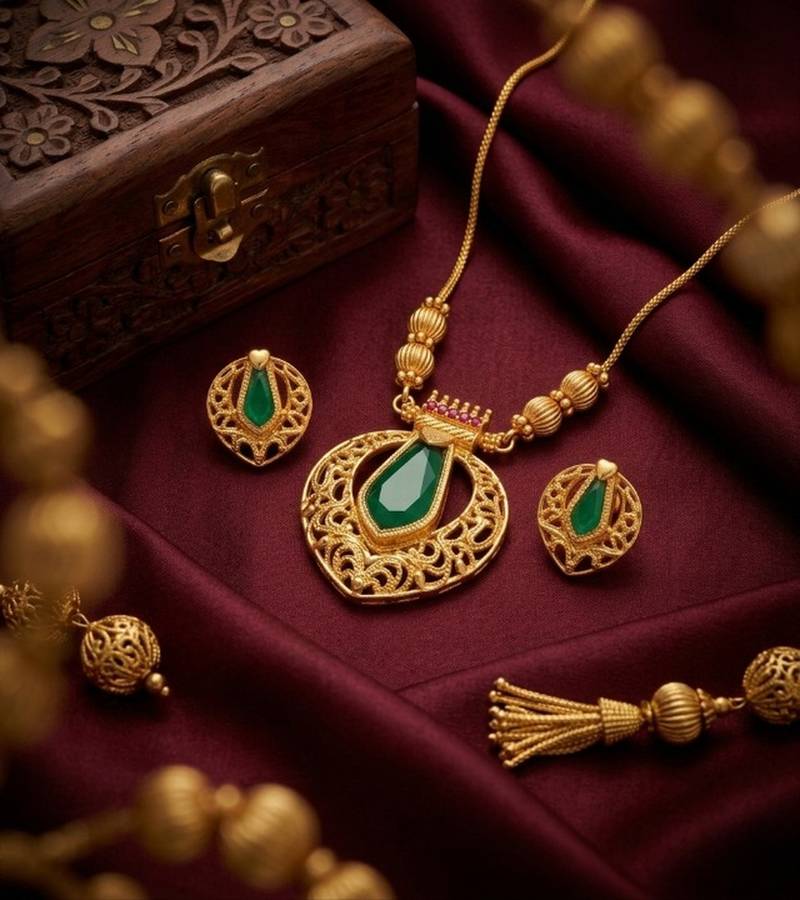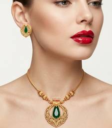 | Product Name | Traditional Gold Plated Emerald Green Pendant Necklace Set Handcrafted Ethnic Jewelry For Women | |