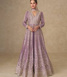 Mauve embroidered chinon free size stitched anarkali suit semi stitched