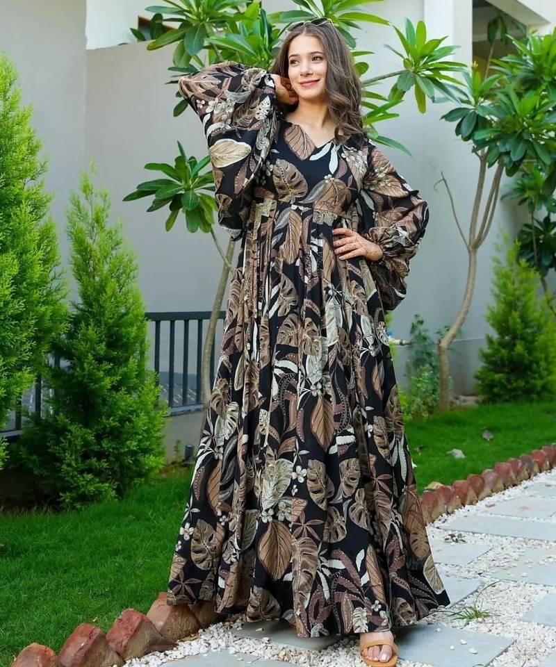 | Product Name | Black Digital Printed Air Tex Chinon Traditional Anarkali Gown | |