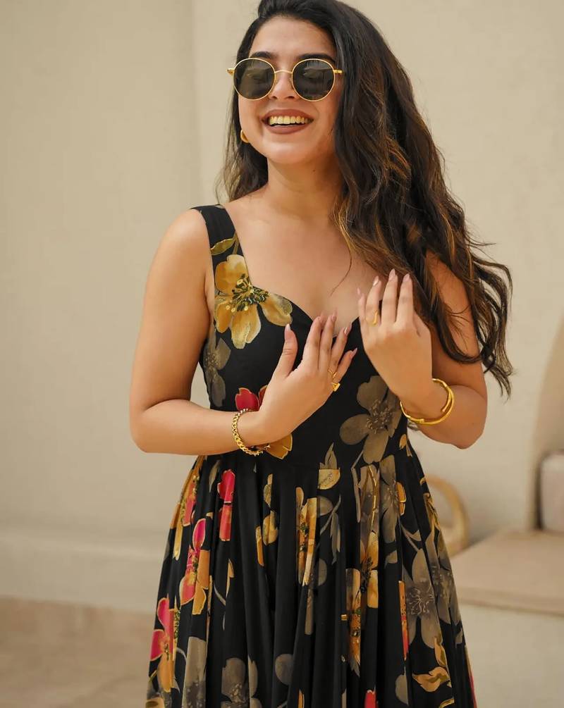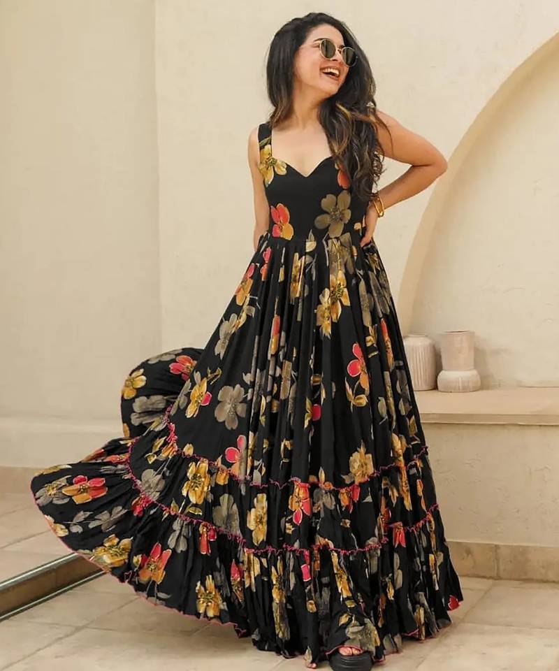 | Product Name | Black Digital Printed Rayon Traditional Anarkali Gown | |
