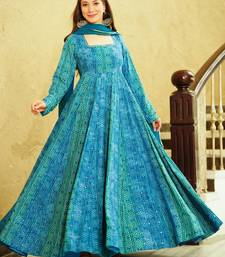 Blue digital printed georgette traditional anarkali gown with dupatta stitched
