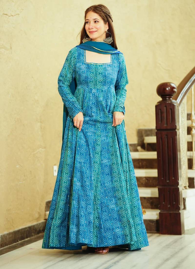 | Product Name | Blue Digital Printed Georgette Traditional Anarkali Gown With Dupatta | |