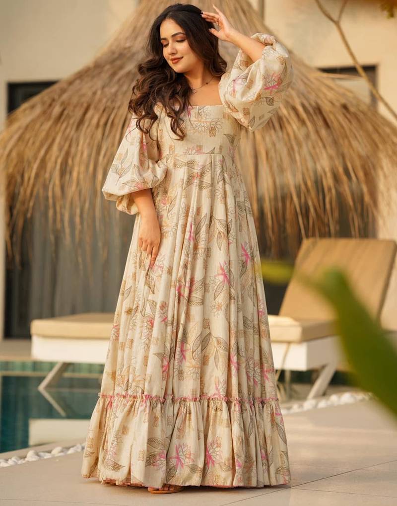 | Product Name | Cream Digital Printed Rayon Traditional Anarkali Gown | |
