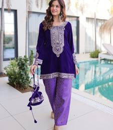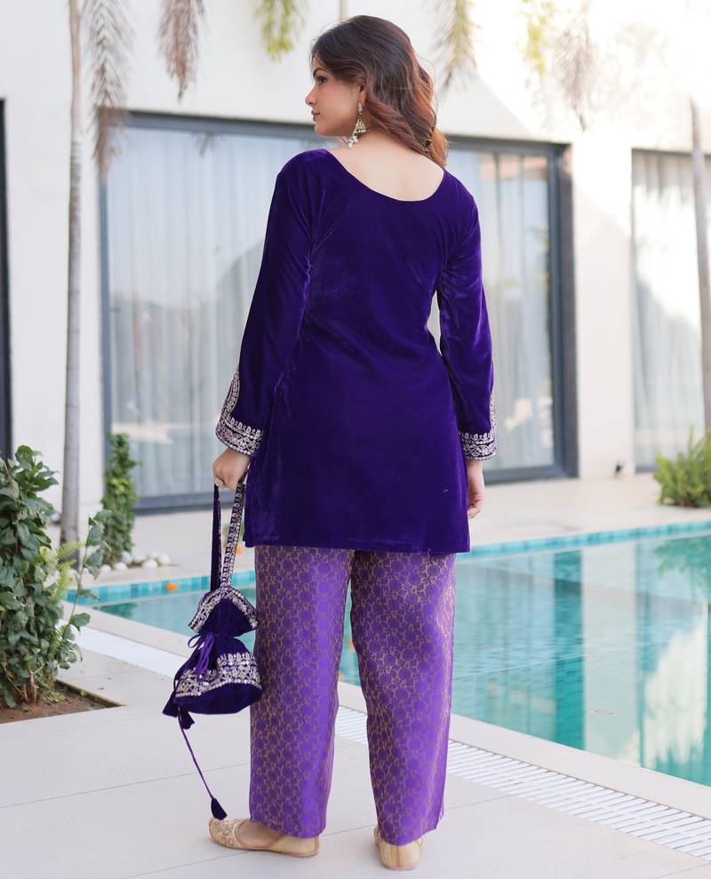 | Product Name | Dark Purple Velvet Embroidered Designer Kurta Set With Batwa | |
