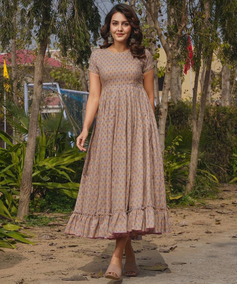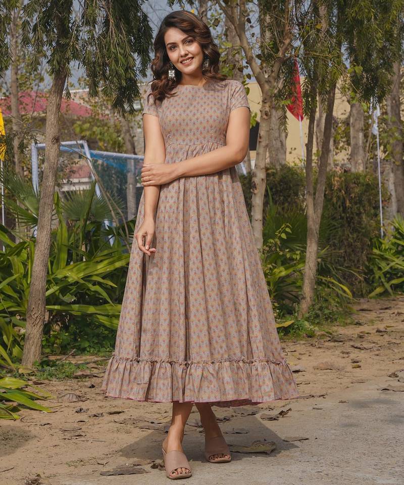 | Product Name | Grey Digital Printed Rayon Fit & Flare Long Dress | |