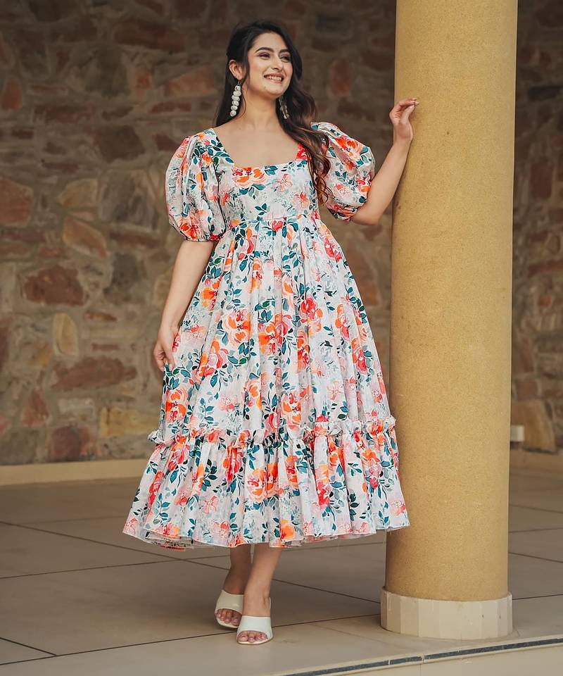 | Product Name | Multicolor Digital Printed Rayon Fit & Flare Long Dress | |