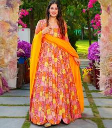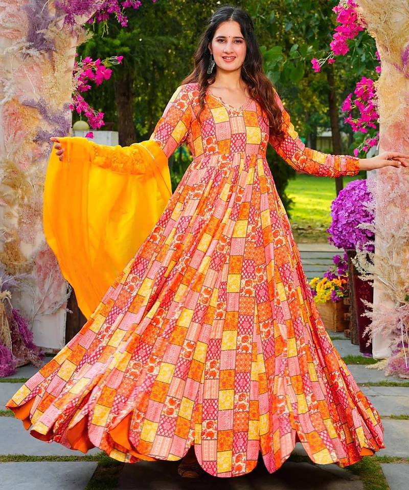 Multicolor digital printed rayon traditional anarkali gown with dupatta stitched