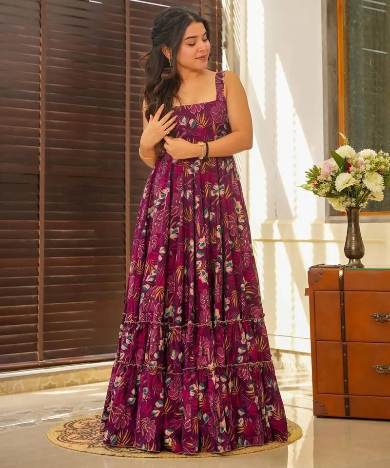 | Product Name | Wine Digital Printed Rayon Traditional Anarkali Gown | |