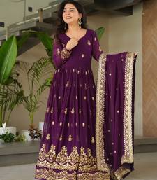 Wine faux blooming embroidered designer anarkali gown with dupatta stitched
