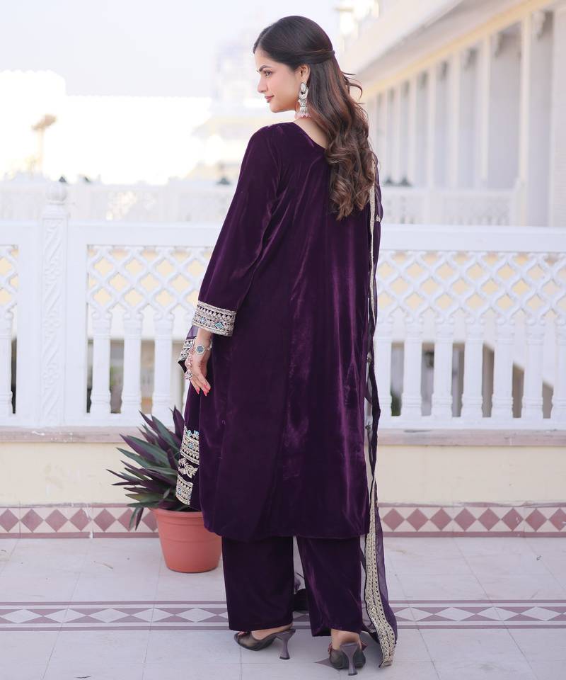 | Product Name | Wine Velvet Embroidered Designer Kurta Set With Dupatta | |