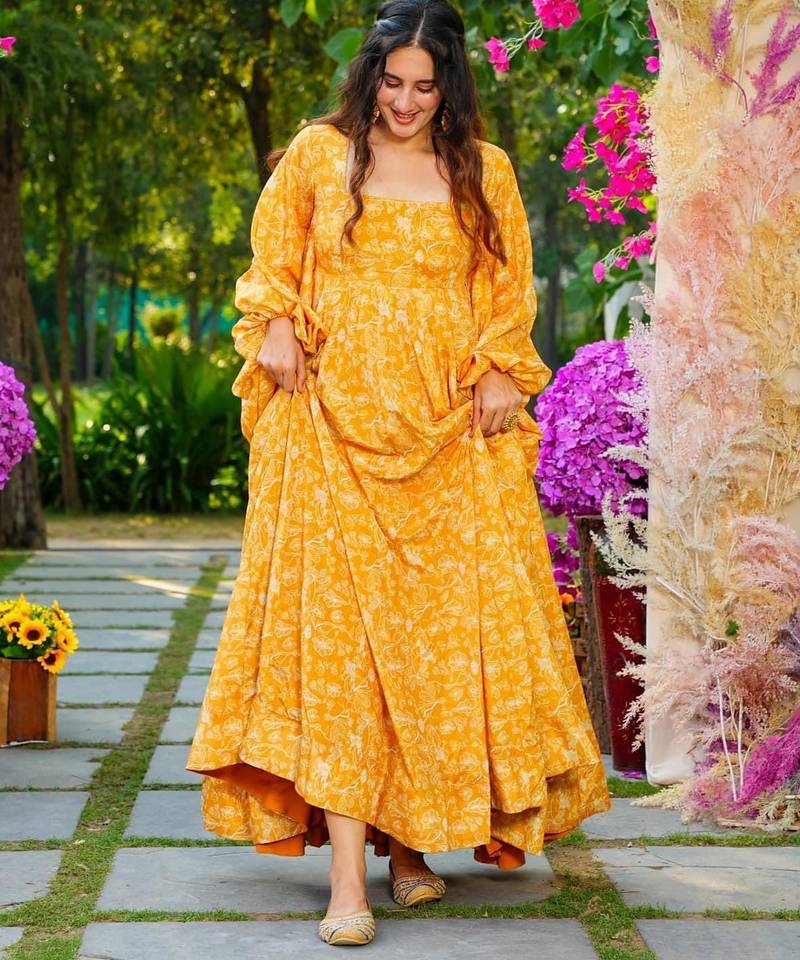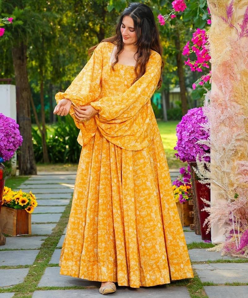 | Product Name | Yellow Digital Printed Georgette Traditional Anarkali Gown | |