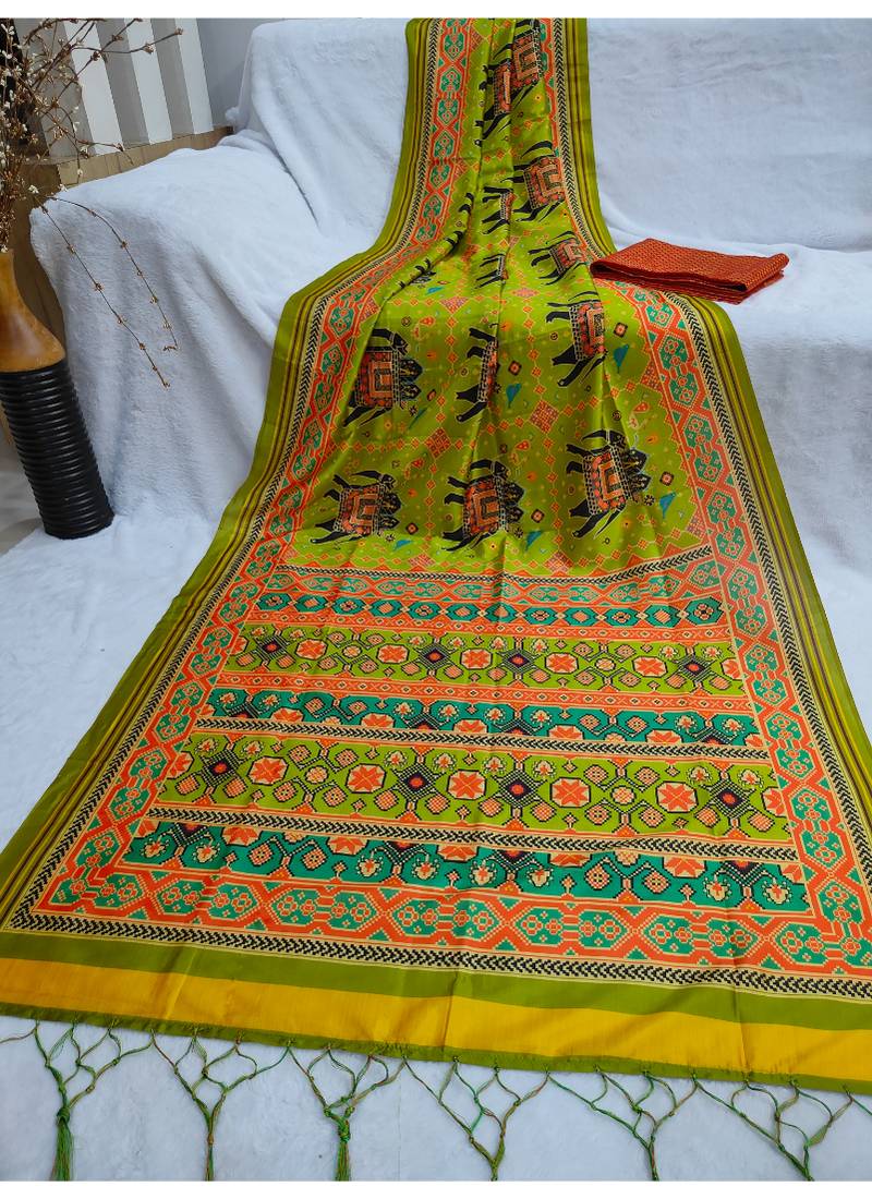 | Product Name | Digital Print Assami Silk Saree With Jequared Unstitched Blouse And Beautiful Multicoloured Thred Work At Pallu | |