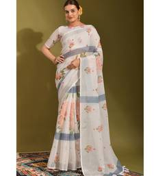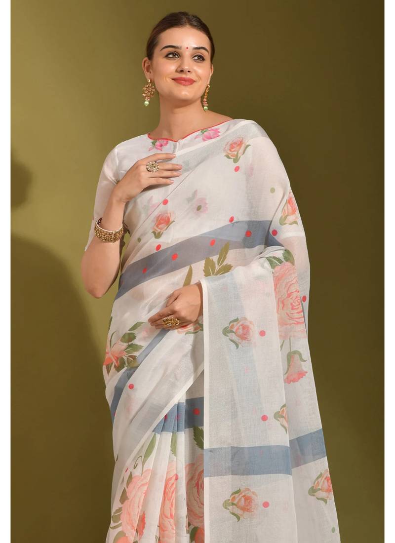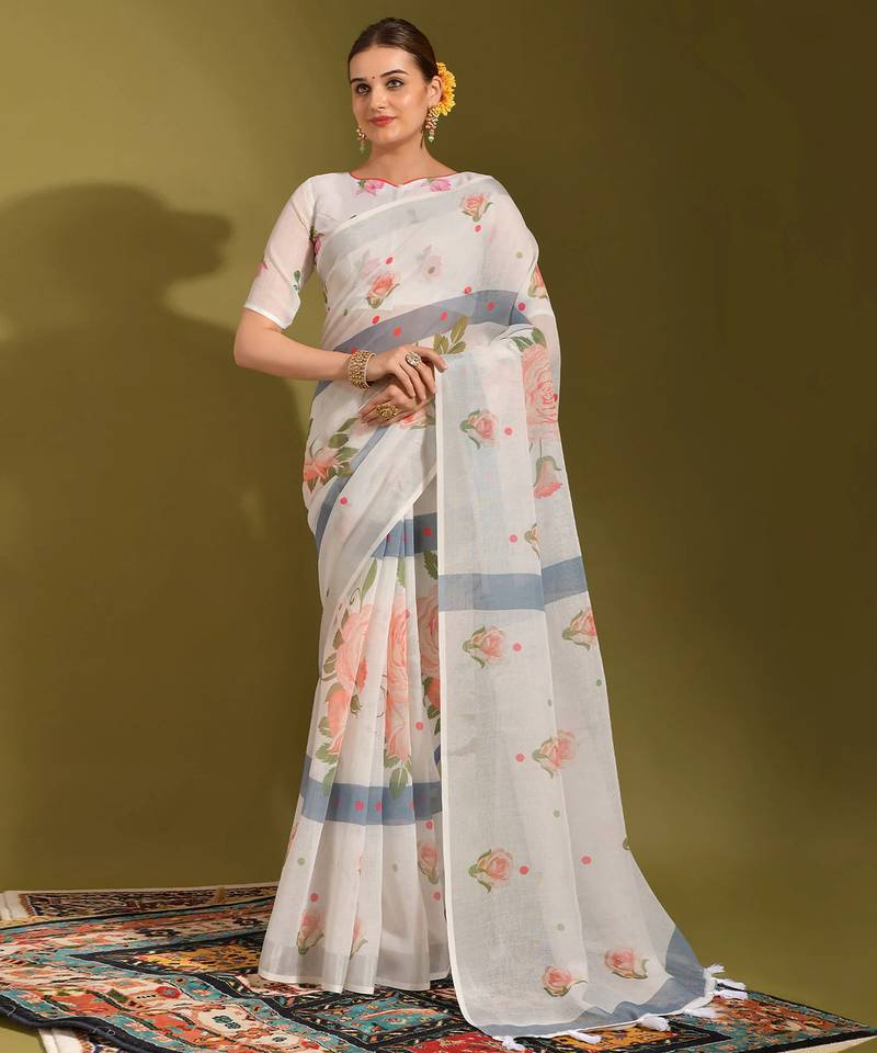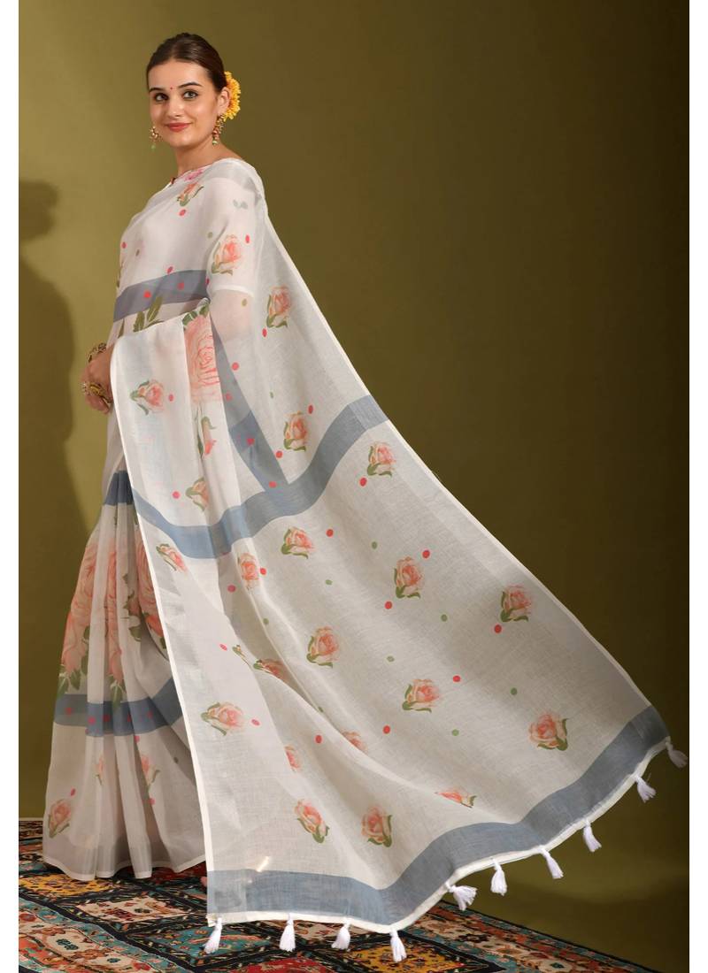 | Product Name | Floral Digital Print Zari Cotton Lilen Saree With Multicolored Cotton Tussle At Pallu | |