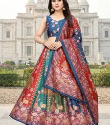 Gadhwal print satin semi stitched lehenga choli & unstitched blouse with dupatta