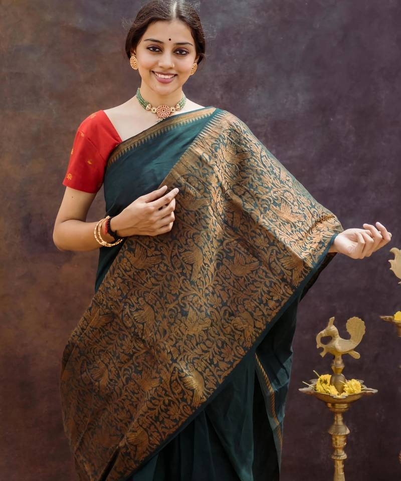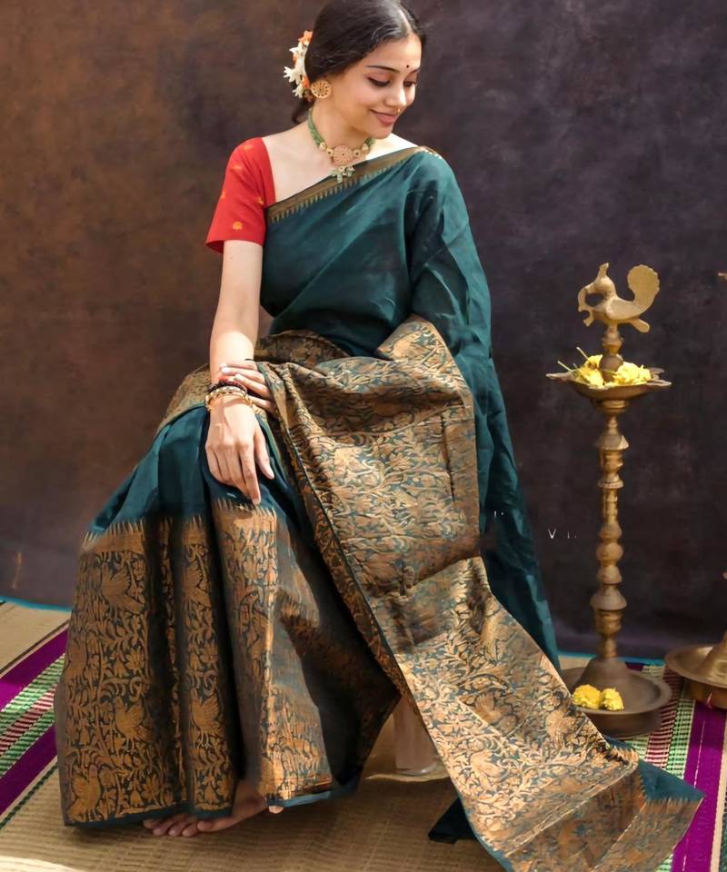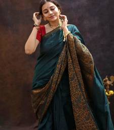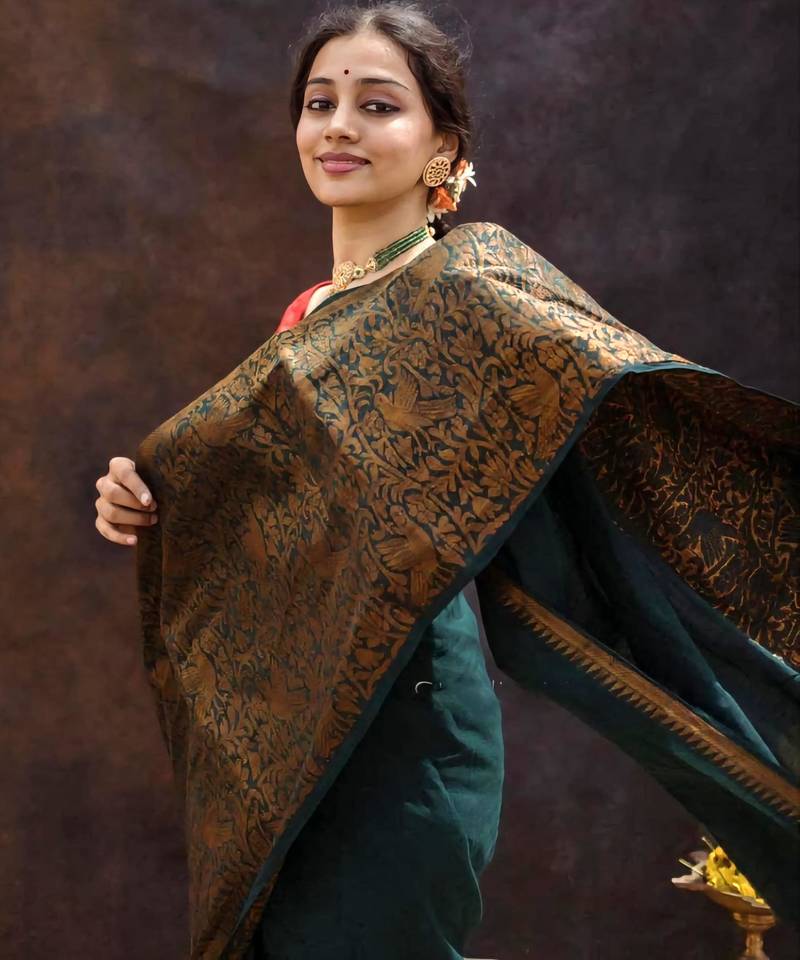 Elegance green woven pure silk gift saree with unstitched blouse