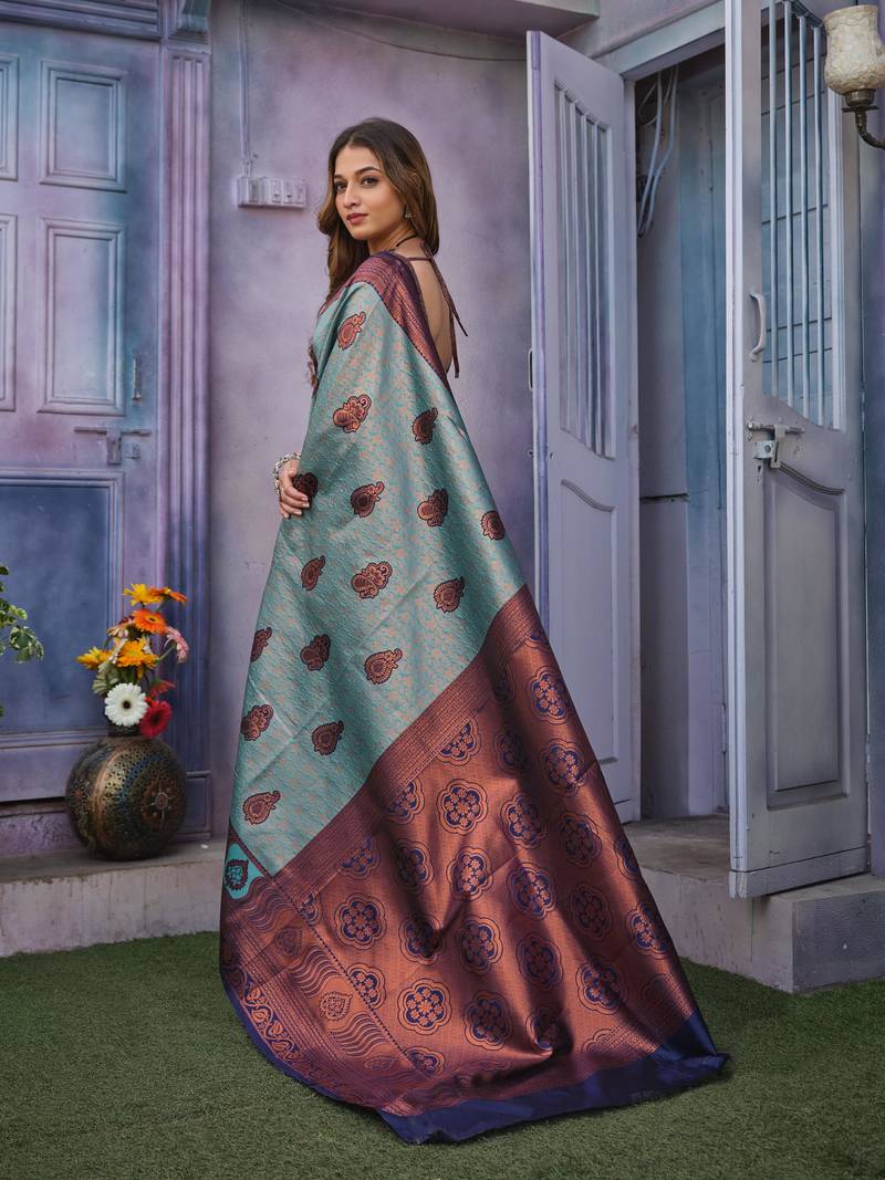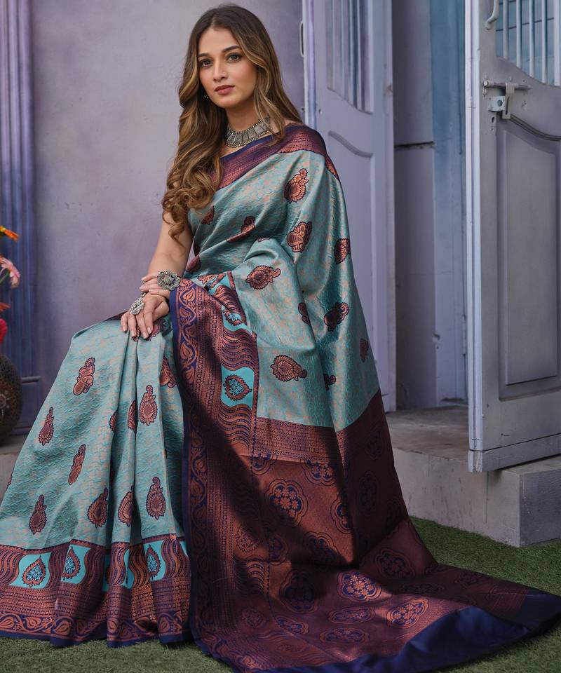 | Product Name | Soft Sky Blue Banarasi Art Silk Jacquard Saree With Unstitched Blouse | |