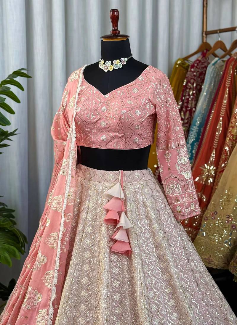 Product Name Peach Chikankari Embroidered Crush Silk Lehenga Choli With Dupatta