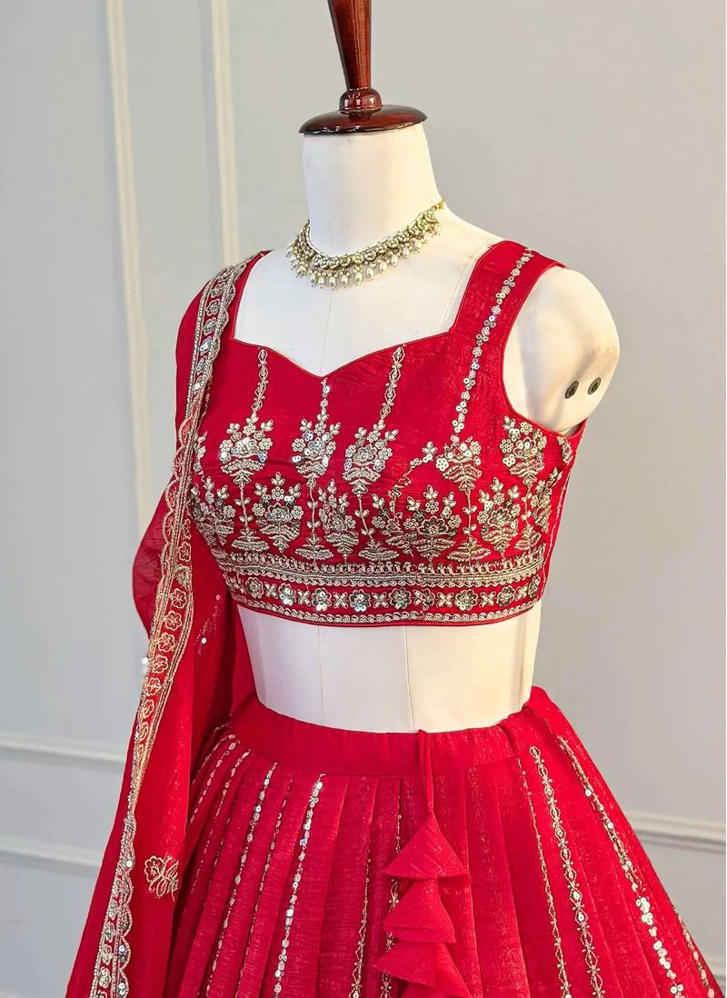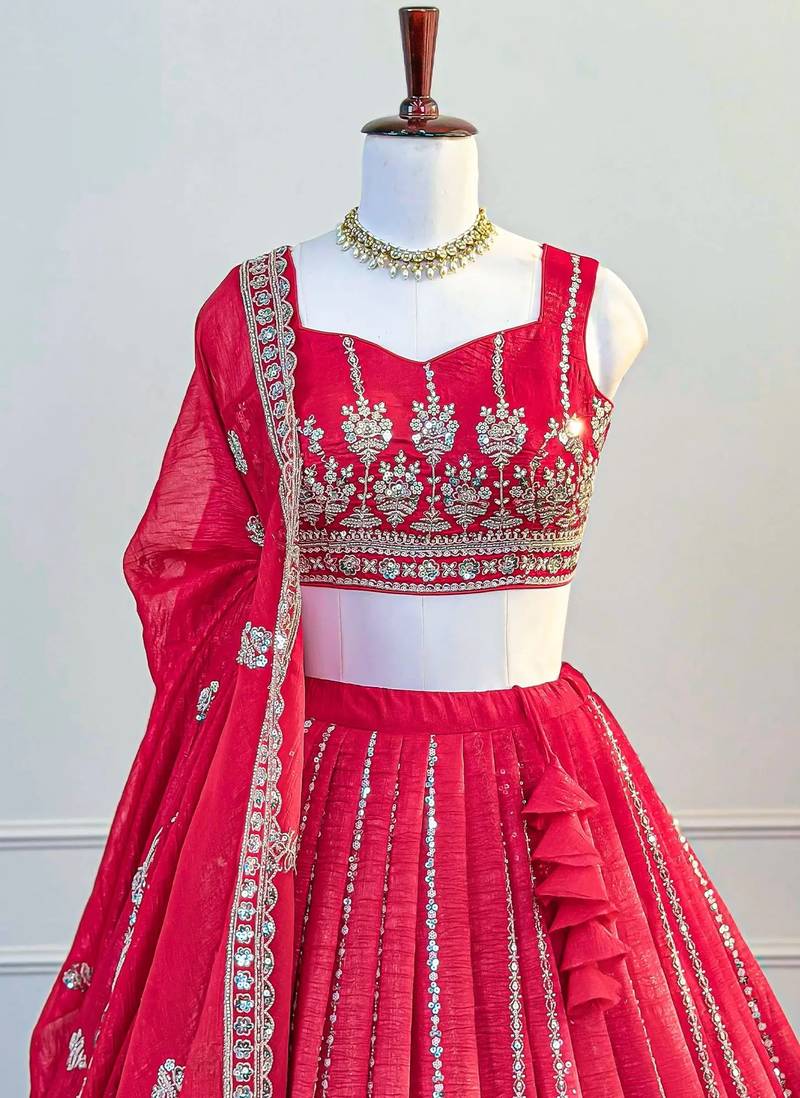 | Product Name | Red Zari & Beads Work Crust Silk Lehenga Choli With Dupatta | |