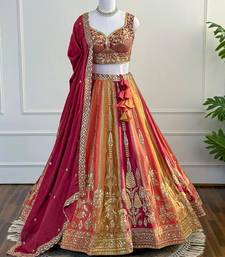 Red zari & sequins embroidered chinon silk lehenga choli with dupatta
