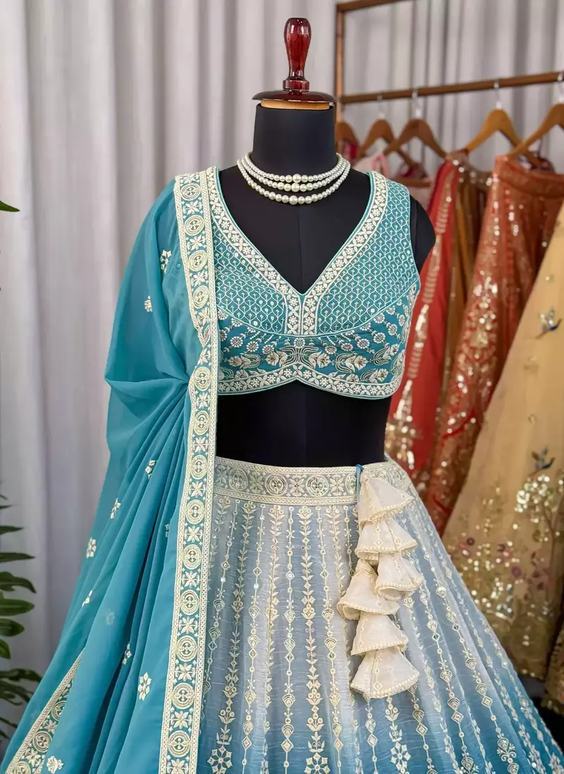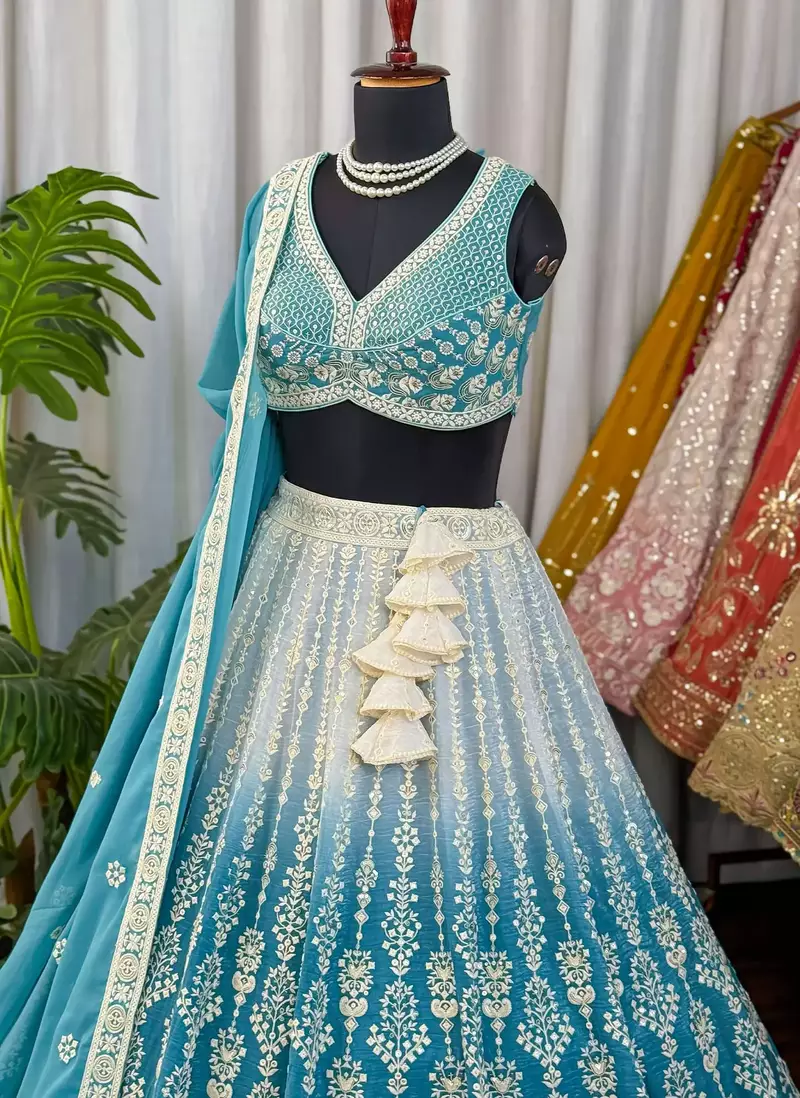 | Product Name | Sea Green Chikankari Embroidered Crush Silk Lehenga Choli With Dupatta | |