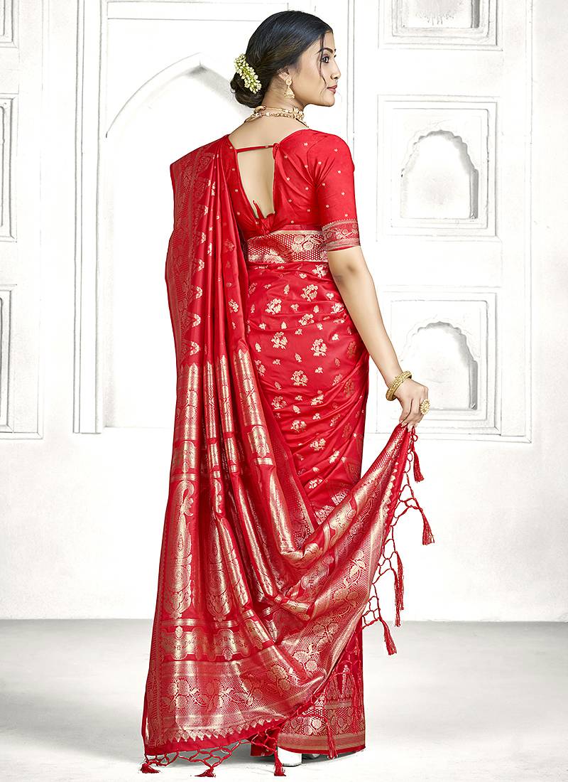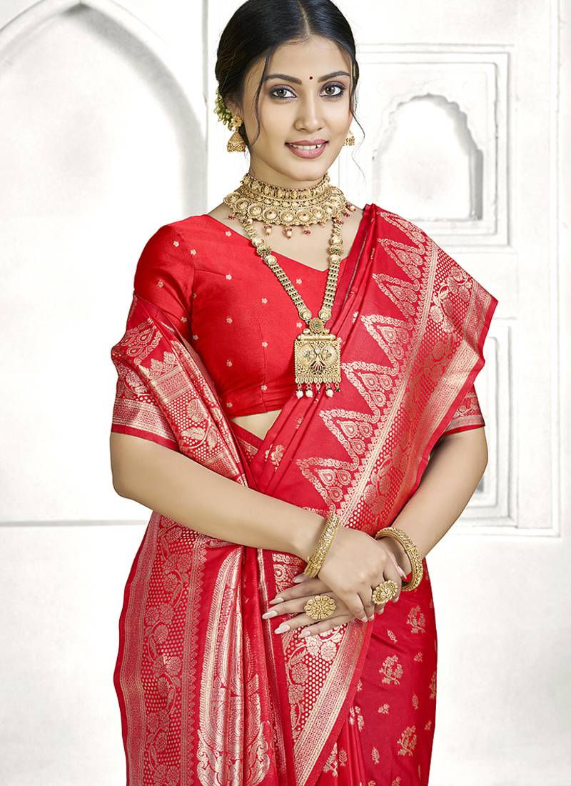 | Product Name | Red Banarasi Silk Saree With Classic Zari Weaving & Ornate Pallu | Wedding & Festive Wear | |