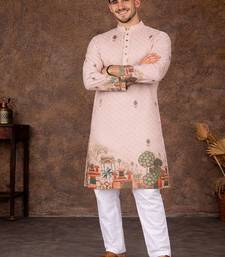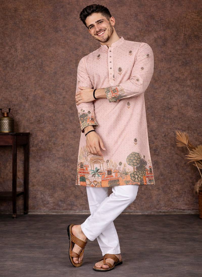 Peach zari weaving rayon cotton kurta pajama set for men | festive & wedding wear