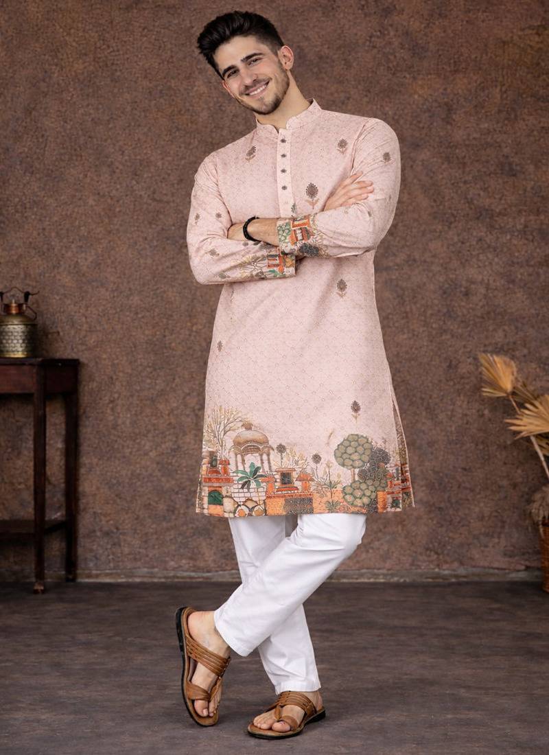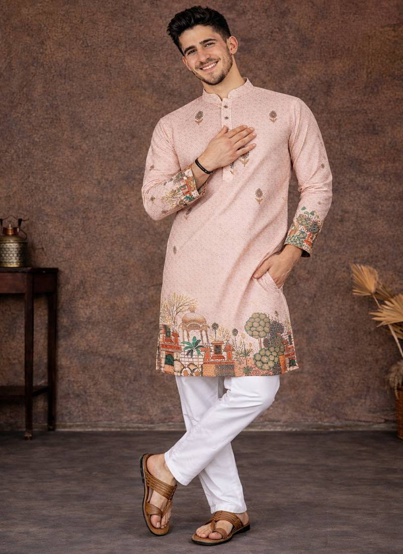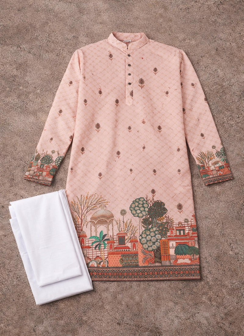 | Product Name | Peach Zari Weaving Rayon Cotton Kurta Pajama Set For Men | Festive & Wedding Wear | |