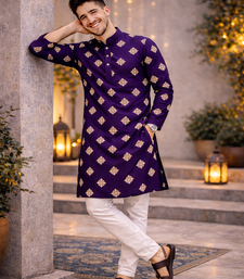 Purple color mate copper sequence work parbon silk kurta payjama set