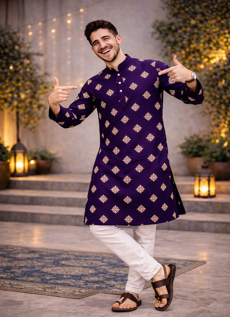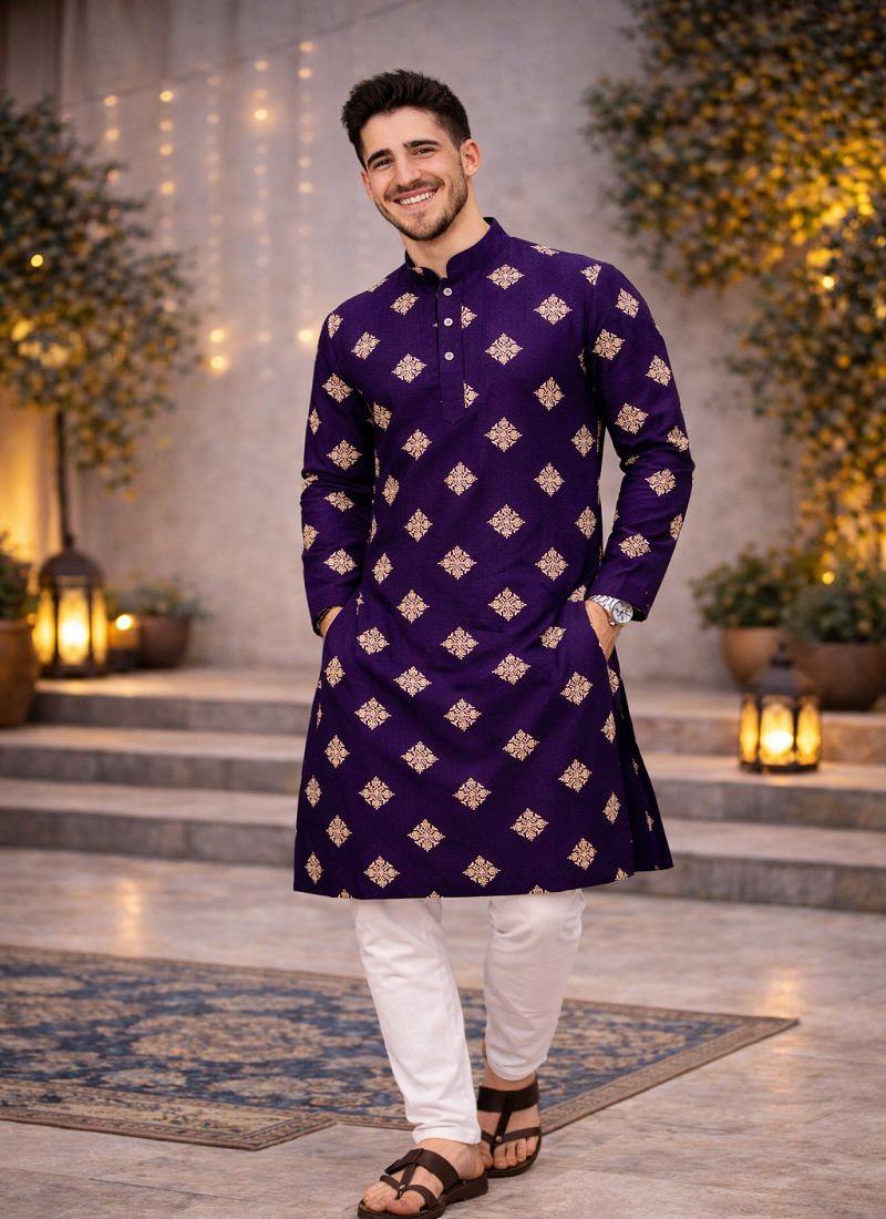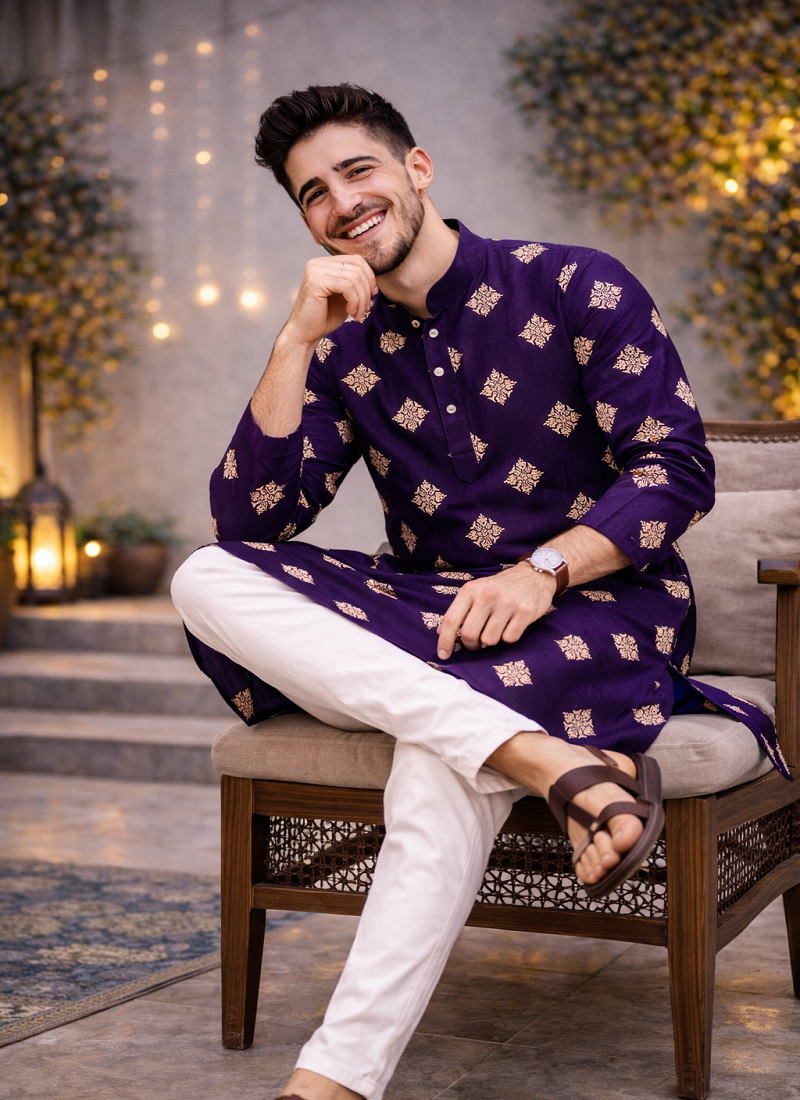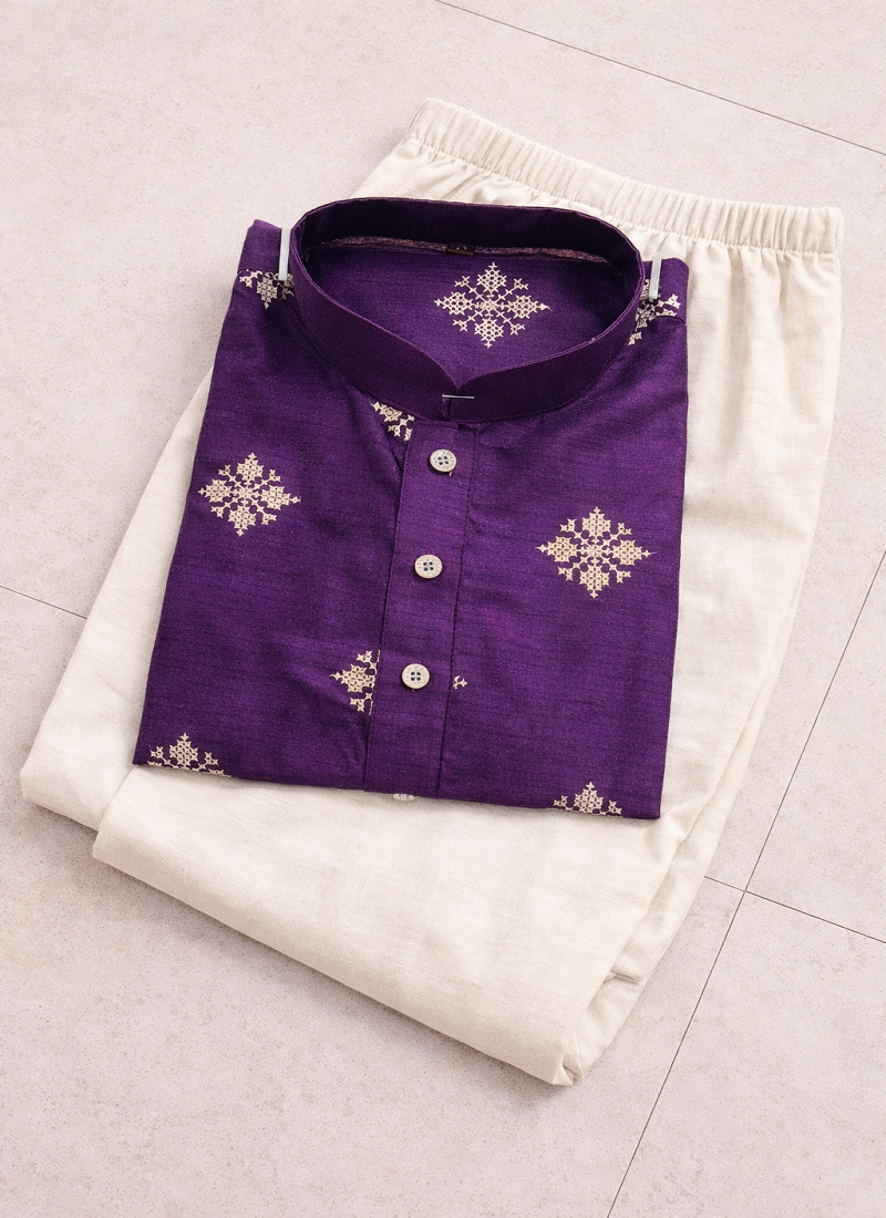 | Product Name | Purple Color Mate Copper Sequence Work Parbon Silk Kurta Payjama Set | |