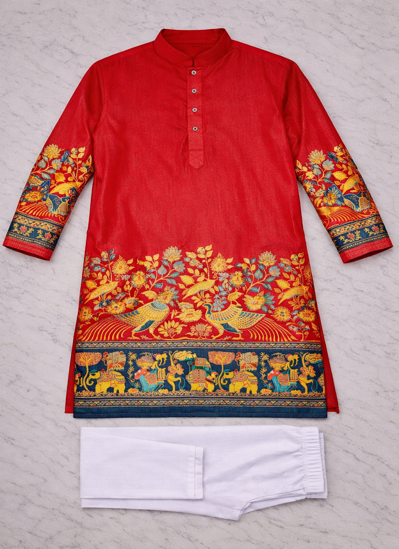 | Product Name | Red Color Patola Print Dola Silk Kurta Pajama Set | |