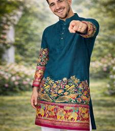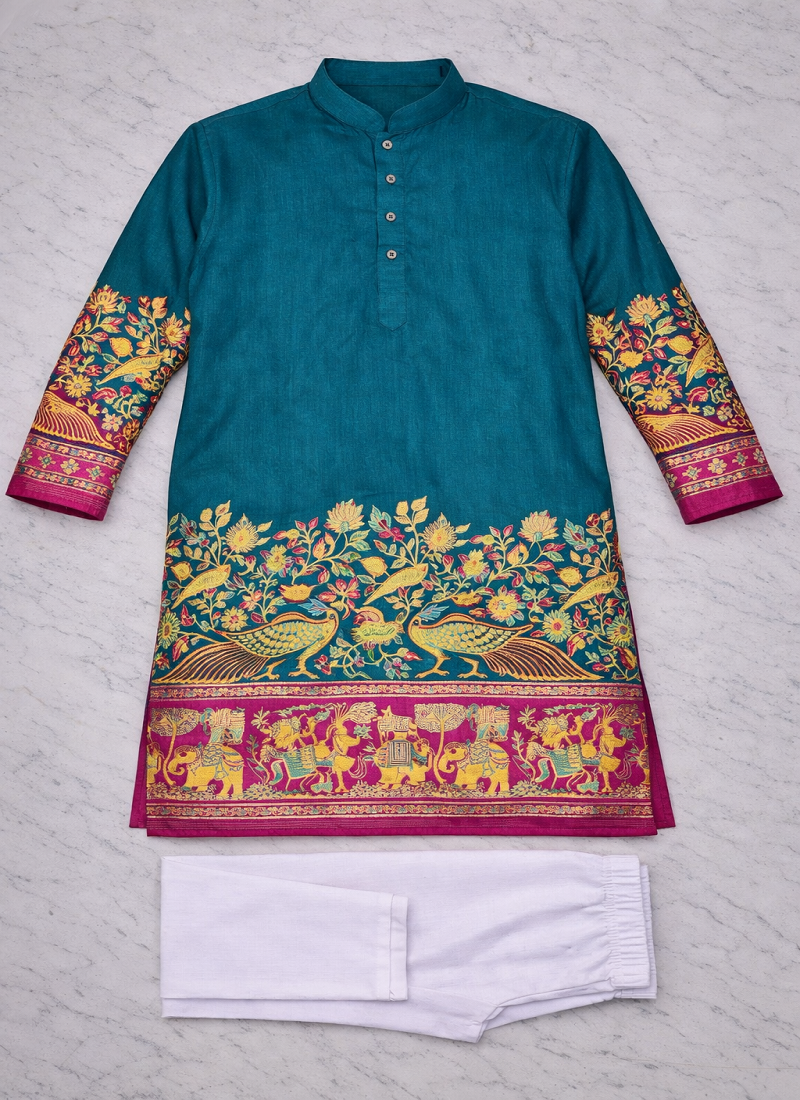 | Product Name | Teal Patola Foil Print Dola Silk Kurta Pajama Set For Men | Festive & Wedding Wear | |