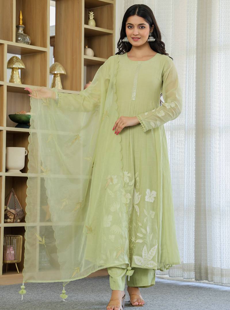 | Product Name | Women's Chanderi Silk Sequin Embroidered Olive Green Kurta Pant Set With Chanderi Dupatta | |